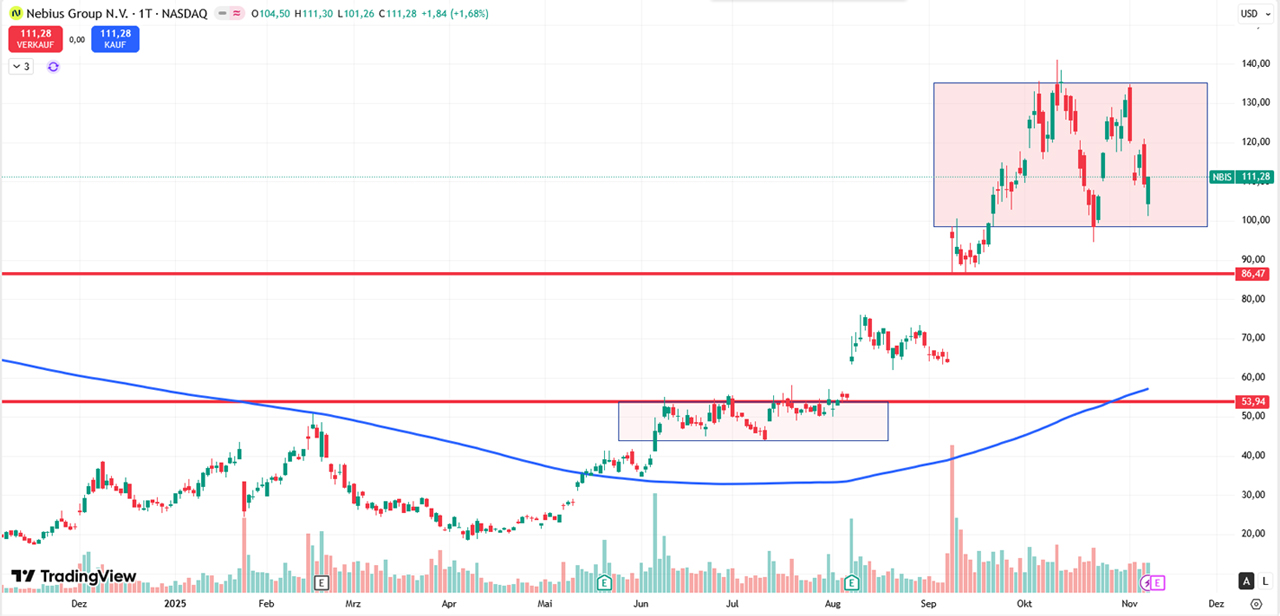 Die Positionierung ist klar: Nicht „alles für alle“ wie AWS oder Azure, sondern ganz bewusst konzentriert auf KI-Lasten. Diese Fokussierung hat dem Unternehmen in den vergangenen Monaten Rückenwind gegeben. Starke Quartalszahlen mit rasantem Umsatzwachstum und neue Großkunden ließen die Fantasie der Anleger anspringen. Dazu kommt der KI-Boom selbst, denn es gibt Datenhunger ohne Ende und Nebius liefert die Kühlung, den Strom und die Rechner dafür.