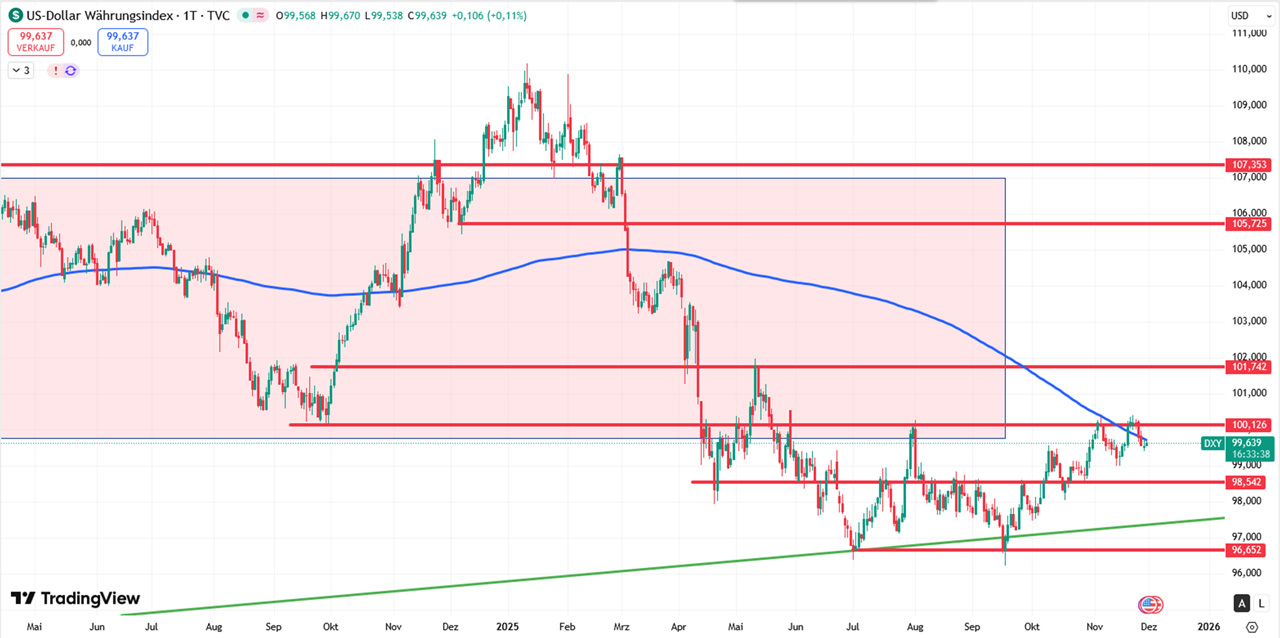 Kommt der ISM mindestens 3 Punkte höher als erwartet, sollte das den USD unterstützen. Ein Einstiegssetup im Bereich von 99,30 (letztes Zwischentief) wäre dann interessant.