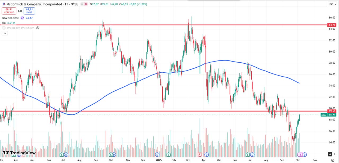 Die Aktie bewegt sich seit dem Frühjahr in einem klaren Abwärtstrend und hat sich nun bei rund 70 USD an einem entscheidenden Level festgesetzt.