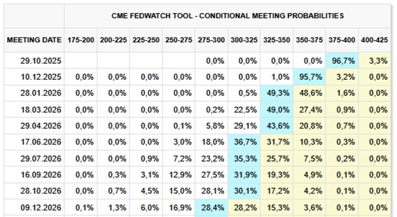 Der Markt erwartet aktuell eine Zinssenkung um 25 Basispunkte, während die Inflation zuletzt wieder leicht angezogen hat. Ich achte heute besonders auf Nuancen in Powells Wortwahl. Jede kleine Abweichung vom Drehbuch kann große Bewegungen auslösen, auch wenn ich die Wahrscheinlichkeit dafür als gering einstufe.
