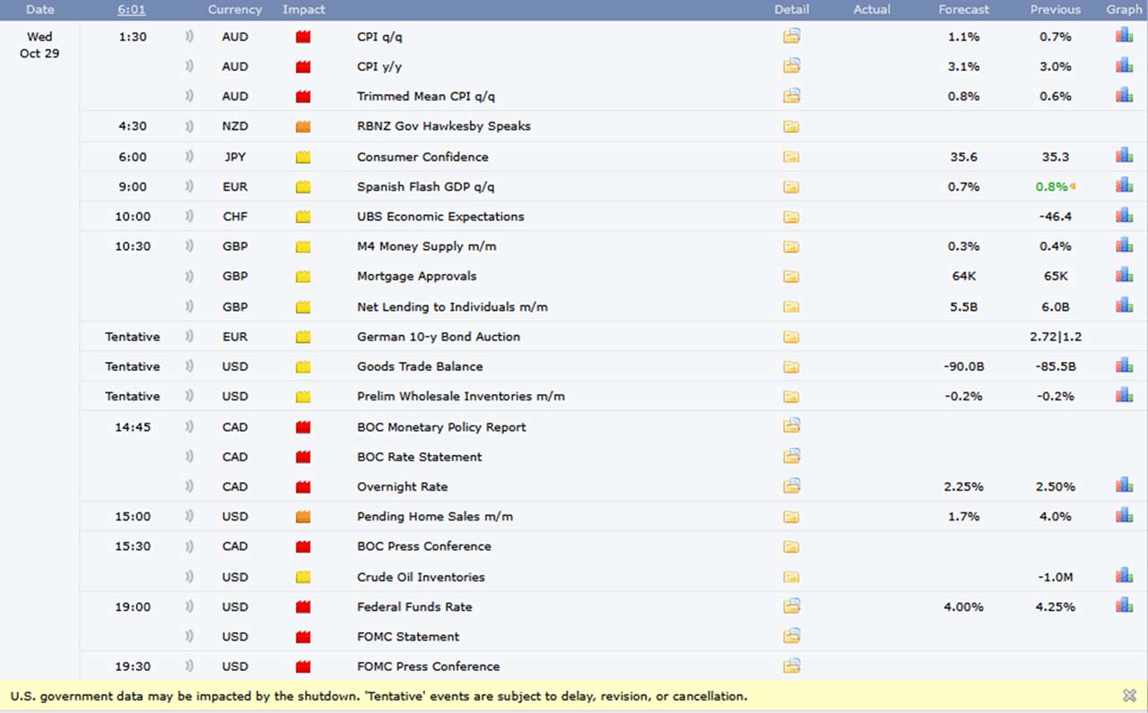 Ein Tag voller Entscheidungsmomente: Die Fed, Kanada, Teile der Mag 7 und Caterpillar mit seinem Blick auf die reale Weltwirtschaft. Es sind Tage wie diese, an denen Märkte ihre Richtung neu finden können. Mein Espresso-Fokus liegt auf dem FOMC-Meeting und auf den gelben Maschinen, die vielleicht lauter brummen, als viele erwarten.