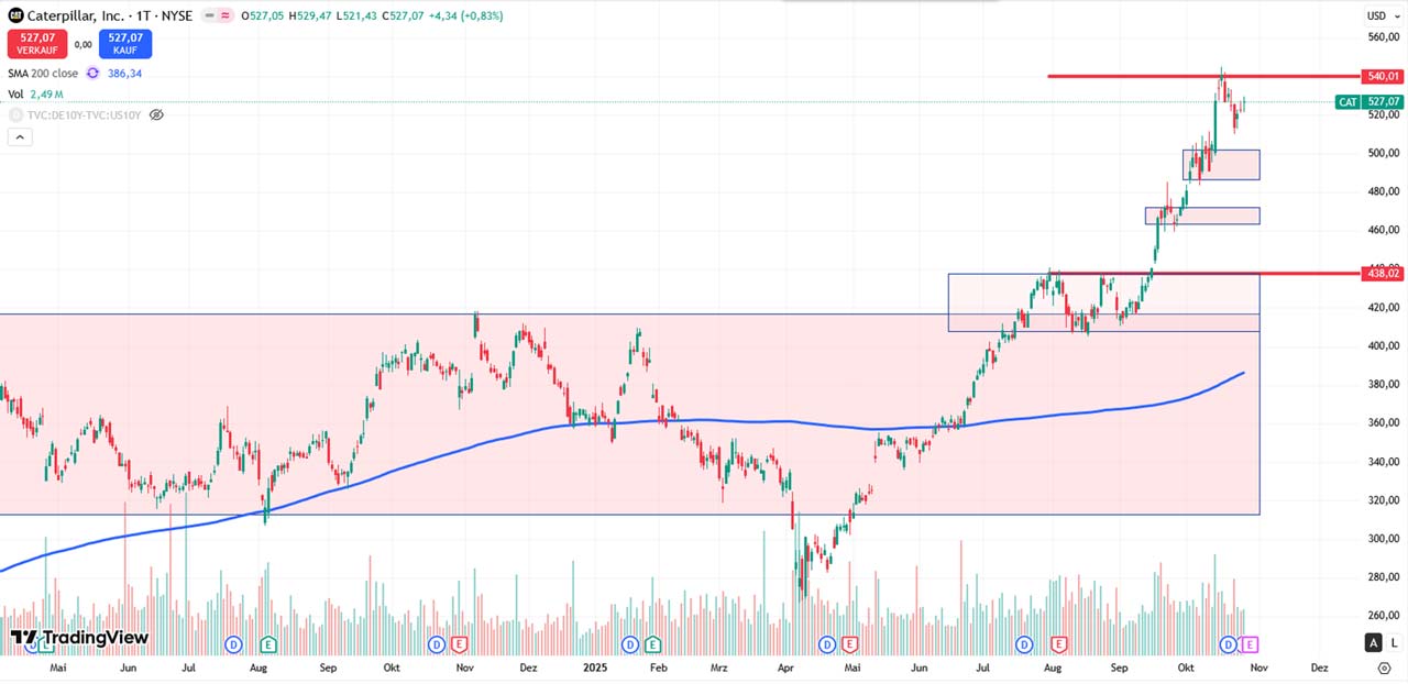 Die Aktie war in den letzten Monaten stark, weil der perfekte Rückenwind weht: weltweite Investitionen in Infrastruktur, hohe Nachfrage aus der Energiebranche und der stille, aber entscheidende Einfluss des KI-Booms. Denn autonome Baufahrzeuge, automatisierte Wartung und datenbasierte Effizienzsteigerung sind längst Realität auf den Baustellen dieser Welt und Caterpillar liefert die Technologie dafür. Kurz gesagt: Während viele vom Wandel sprechen, baut Caterpillar ihn.