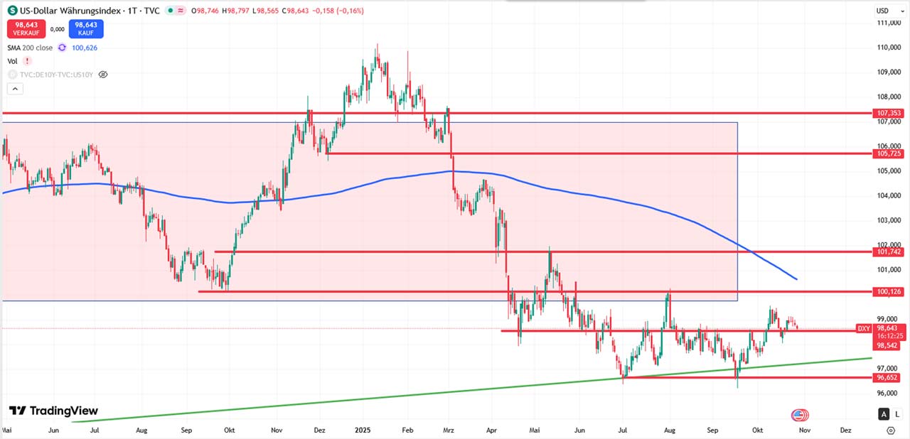 Keine Zinssenkung oder ein zurückhaltender Powell könnten den Dollar stärken. Ich würde im Bereich 98,50 USD nach einem Einstiegssignal suchen.