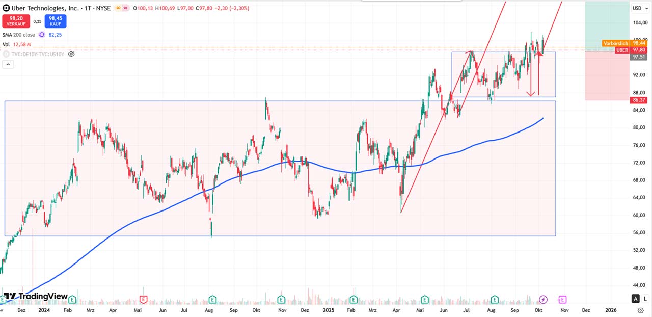 Performance-Chart Uber Technologies vom 08.10.2025 auf TradingView